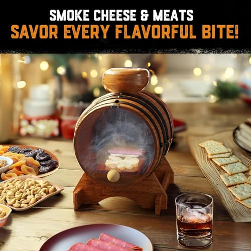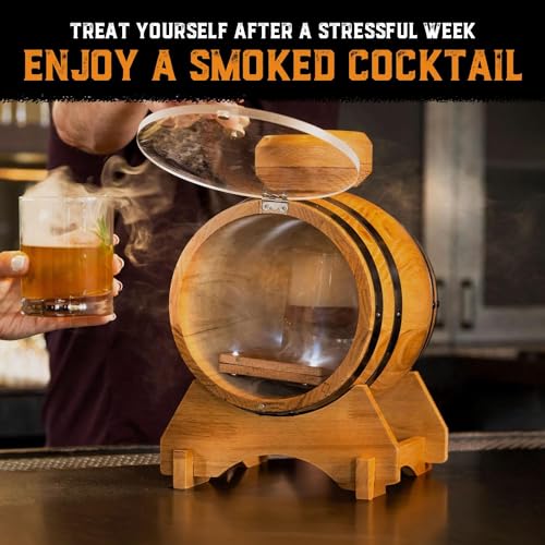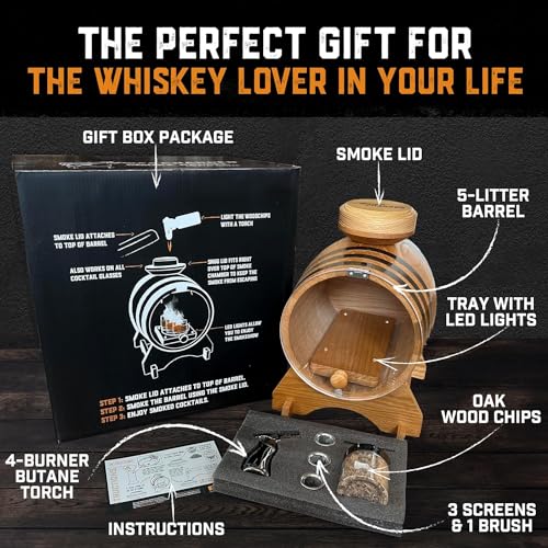 Old Fashioned Bourbon Whiskey Smoker Kit – Premium Barrel Set, USA Oak – Cocktail Smoker Kit with Torch – Whiskey Gifts for Men