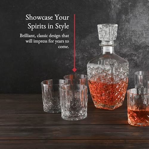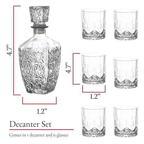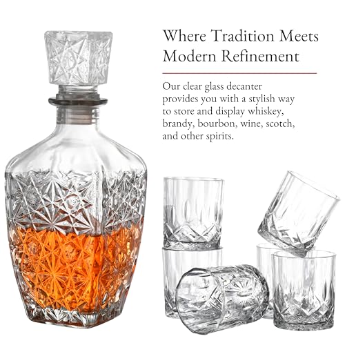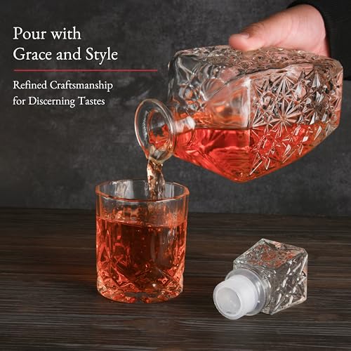 Barvivo Glass Whiskey Decanter Set – Liquor Decanter Kit for Alcohol, Whiskey, Brandy, Bourbon, Wine, Scotch – Decorative Glass Decanter Bottle with Lid – Gift for Whiskey Lovers