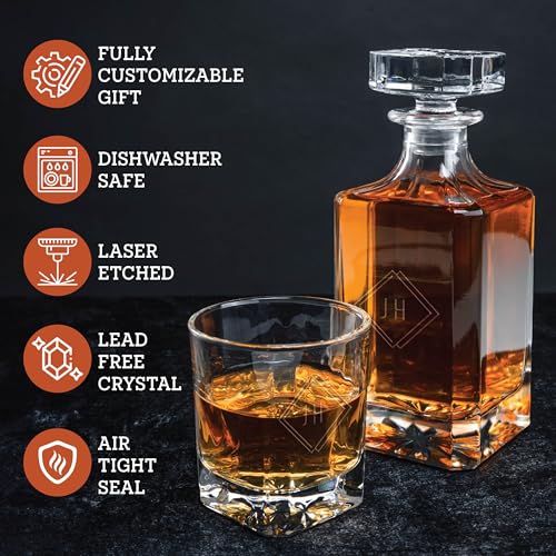 ADD A PERSONAL TOUCH – Select the ‘Customize Now’ option to start your order! Pick from unique designs, and we will personalize your whiskey decanter and glass set to your request. Give someone – or you – a gift to delight any drink fan.