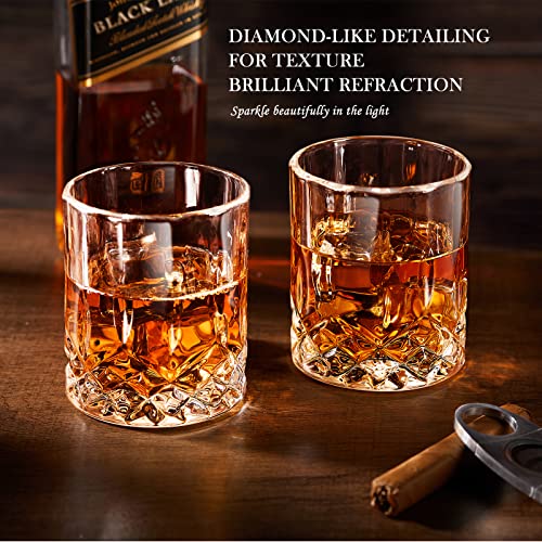 🌼【Lead Free Crystal Decanter】Made of the highest standards of Class A glass for outstanding durability. The artwork never fades and the whiskey glasses are 100% lead-free and are constructed of superior quality material that is easy cleaning and maintenance. The diamond pattern design will be displayed on all sides of the glasses, easy to hold the glass cup, giving an enjoyable whiskey look and feel.