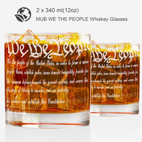 EXCELLENT CRAFT – This 750 ml decanter and 2 x 340 ml tumblers showcase superior quality craftsmanship: Made from high quality 100% lead-free crystal glass, laser etched with the classic American flag and We The People , a unique design of a beautifully hand-cast vintage 1776 metal badge. Combining functionality with patriotic sentiment makes it the ideal whiskey set for whiskey lovers.