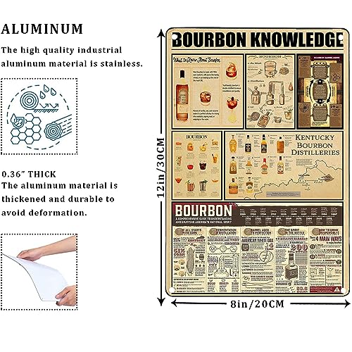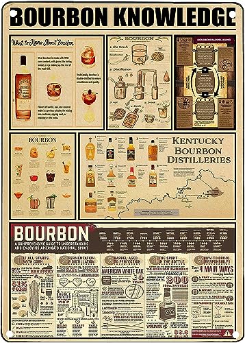 Custom Metal Signs for Wall Bourbon Knowledge Tin Sign,Whiskey Bourbon Bar Frames Wall Decor 8×12 Inch