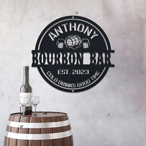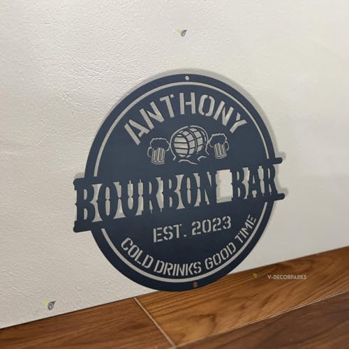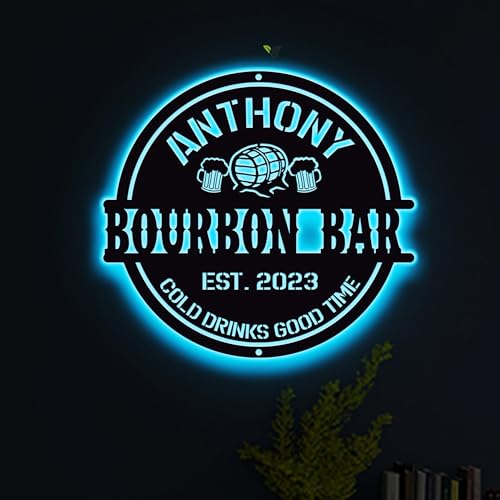 Personalized Home Pub Gin Bourbon Bar Metal Wall Art LED Light Custom Whiskey Cocktail Drinking Name Sign Home Decor Man Cave Wall Art Gift