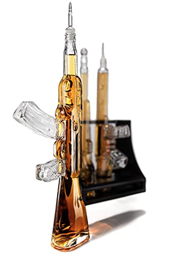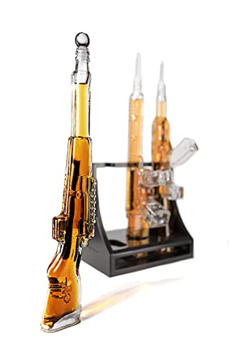 WIELD THE FIREARM TO POUR – Serve and display your expensive scotch whisky, bourbon, brandy, vodka, gin, rum, or tequila. Remove the stopper located at the shooting end of each glass rifle. Pour using two hands on the gun for marksmanship and accuracy.