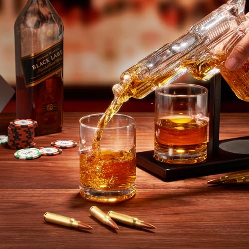 Gifts for Men Dad, 9 Oz Whiskey Gun Decanter Set, Unique Dad Birthday Gift Ideas from Daughter Son, Retirement Bar Stuff Gift for Father Him Brother, Cool Dispenser for Liquor Vodka – Large Glasses