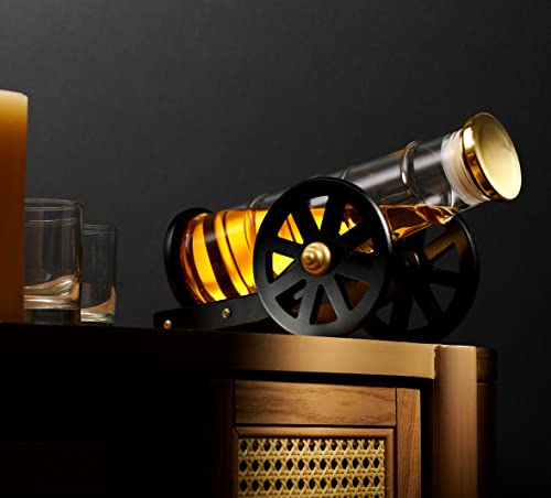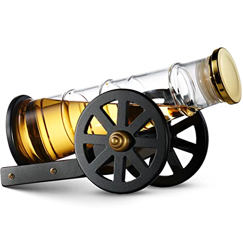 Take a shot with this cannon whiskey decanter. Vintage inspired hand blown cannon whiskey decanter bottle, is the perfect addition to any home bar or office bar.
