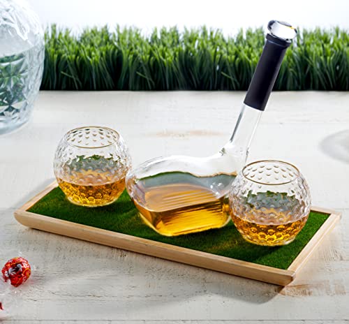 Godinger Whiskey Decanter, Golf Club Liquor Decanter and Golf Ball Whiskey Glasses, Whiskey Gift Set, Gifts for Men