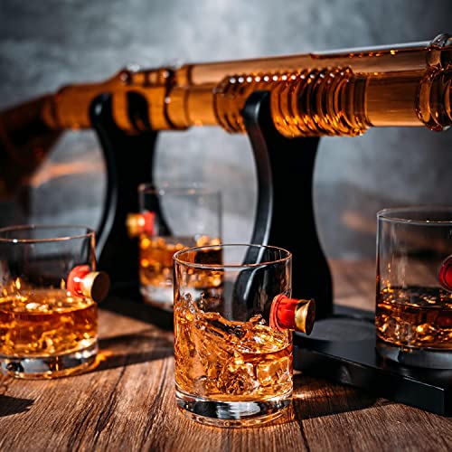 Shotgun Whiskey Decanter Set – Limited Edition – 800 ml & 4 12oz Bullet Glasses – Unique Gift – Drinking Party Accessory, Handmade Gun Liquor Decanter, Tik Tok Gun Decanter Gifts for Dad