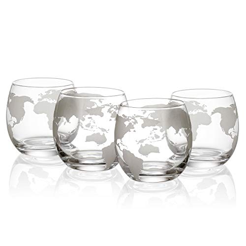 Etched World Decanter Car Whiskey Globe With 4 World Map Glasses – The Wine Savant Whiskey Gift Set Globe Decanter with Antique Car, Whiskey Great Gift Alcohol Related Gift 750ml Decanter 8 Oz glasses