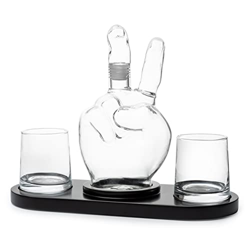 The Wine Savant Peace Sign Wine and Whiskey Decanter 750ml With 2 10oz Glasses 9″ H 14″ L – Peace Sign Decanter, World Peace Gifts, Peace Sign Gifts, Peace Sign Glass Figurine, Perfect For Parties!