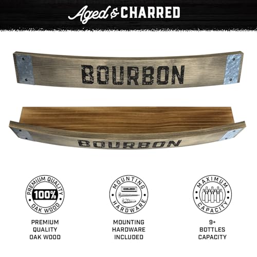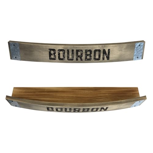 Bourbon Barrel Shelf – Wall Mounted Bourbon Wooden Display Rack, Oak Barrel Shelves – Bourbon Gifts for Men