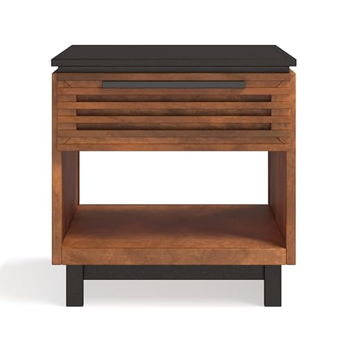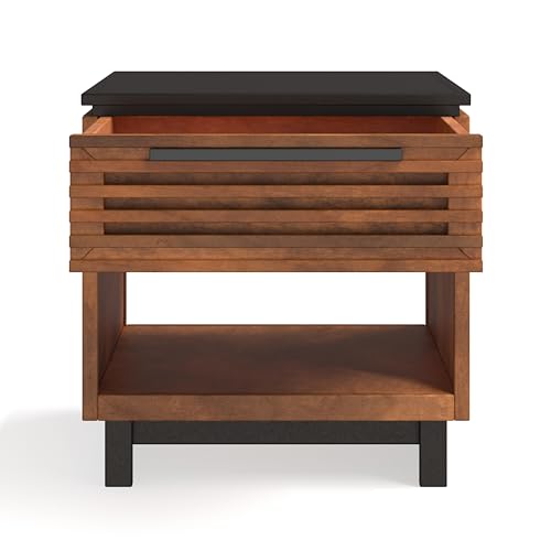Bridgevine Home Graceland Modern One-Drawer Side Table, 24 inches, Fully Assembled, Poplar Solid Wood, Bourbon and Black Finish