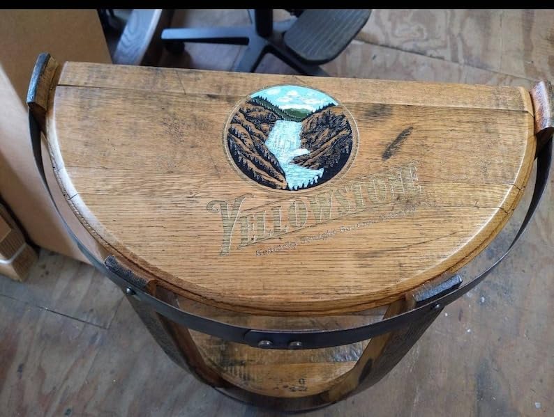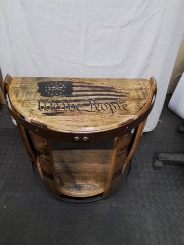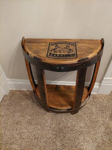 IRNVF Engraved Logo Half Round Bourbon Barrel end Table (25 inches Tall,Belle Meade)
