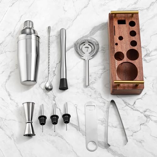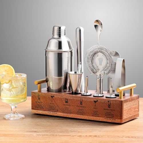 LUCKYGOOBO Cocktail Shaker Set Bartender Kit with Stand 24oz Martini Shaker,12-Piece Professional Bar Tool Set Drink Mixer Set with All Essential Bar Tools.