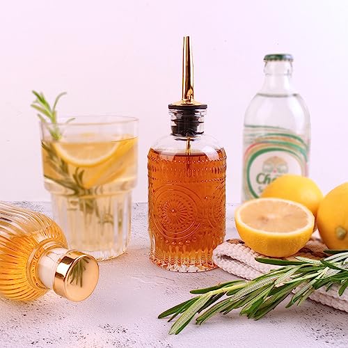 High quality glass syrup bottles – enjoy the touch of embossment and good thick glass, strream the syrup smoothly through the stainless steel metal spout, and make your drinks like a master! The silicon covers do a good job of keeping air out and drying up the liquids, or use the airtight acrylic stopper cork for trips. You can easily store the 7oz bottles on coffee station, shelf or refrgerator door and not worry about the weight.