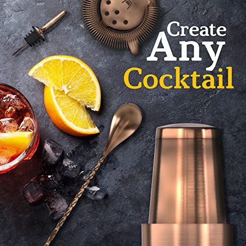 Highball & Chaser Bartender Kit with Black Bamboo Stand Beautiful Cocktail Shaker Set and Bar Tools Stainless Steel Boston Shaker Bartender Kit with Stand (Antique Copper)