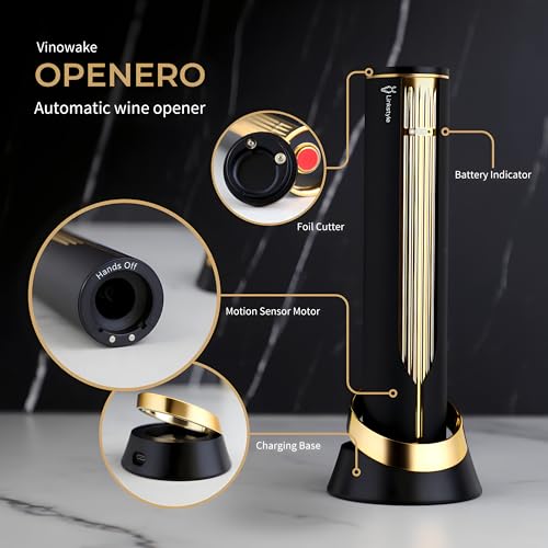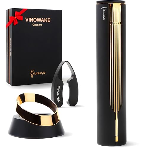 VINOWAKE Openero Electric Wine Opener By LINKSTYLE — Rechargeable Battery with Charging Base, Precision Steel Foil Cutter, Luxurious Matte Finish