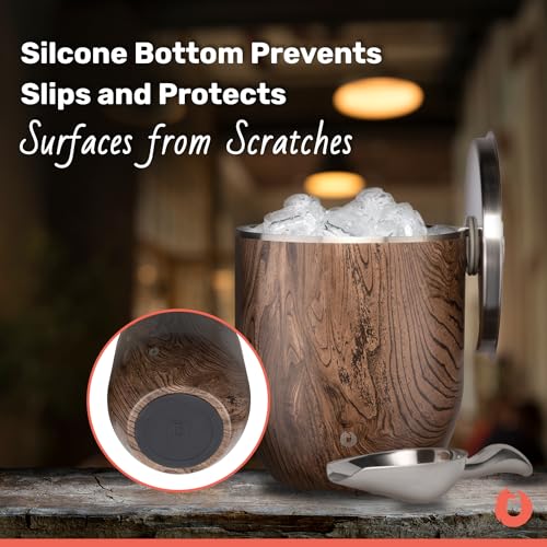Timeless Style: The last ice bucket you’ll ever need, and frankly, ever want. Our beautiful 3-liter bucket uses insulated stainless steel so your ice and drinks stay refreshingly cold. The ‘floating’ lid with side holder, includes metal ice scoop, and rubber base making it fun to use while mixing your guests’ favorite cocktails. Bring it to the patio or cookout—the outside is condensation-free so it’s easy to carry. A must-have home entertaining bar accessory, and a treasured gift.