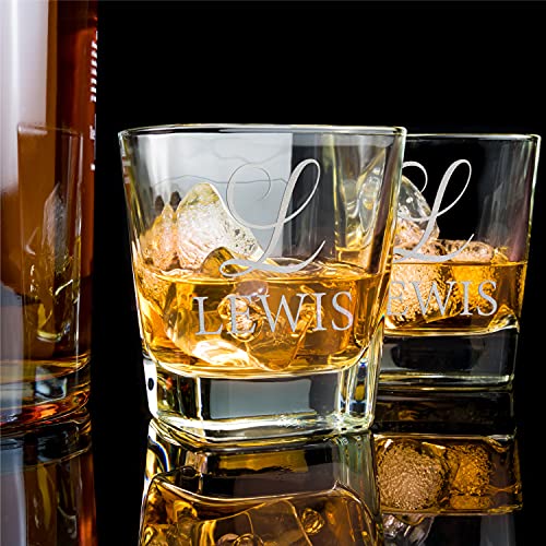 Amazing Items Set of 2 – Personalized Whiskey Glasses w/Name & Initial – 9 Designs – 9 oz, Limited Edition Monogrammed Rocks Glasses for Dad Gifts