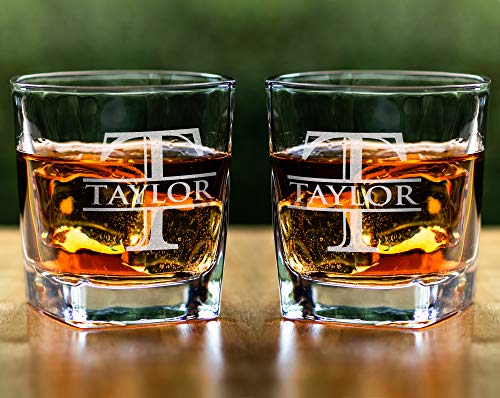 Custom Whiskey Decanter Set Bourbon for Men Groom Groomsmen Proposal Vintage Fathers Day Grandpa Grandma Anniversary Birthday Scotch Glasses Drinkware College Graduation Engraved Monogram