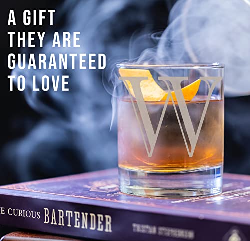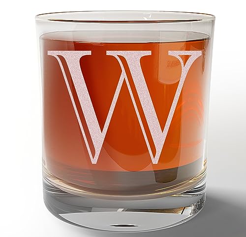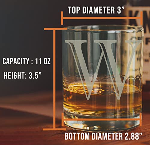 Etched Monogram 11oz Whiskey Rocks Glass (Letter W), A-Z Customized Bourbon Gifts for Men, Father’s Day, Personalized Old Fashioned Scotch Glass, Custom Engraved Gifts for Him, Initial, Name