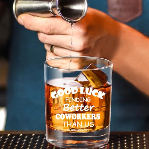 LIGHTEN LIFE Good Luck Finding Better Coworkers Than Us Whiskey Glass 12 oz,Novelty Coworker Leaving Gift in Valued Wooden Box,Farewell Gift for Coworker Boss Colleague Friend Men