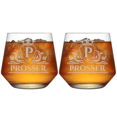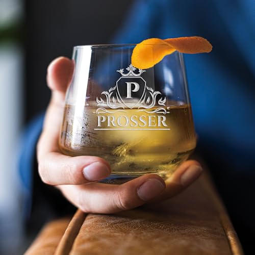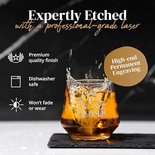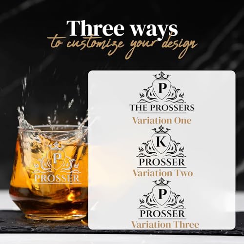 Personalized Bourbon Whiskey Glass with Your Monogram Custom Text – Great Gift for Dad, Birthday, Father’s Day and Groomsmen (Design 2, 2 Pack)