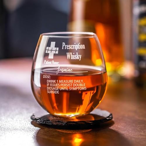Snirov Personalized Prescription Whiskey Glass, Custom Whiskey Glasses Engraved Name Option Slate Coaster for Dad Father Grandpa Husband Bridegroom