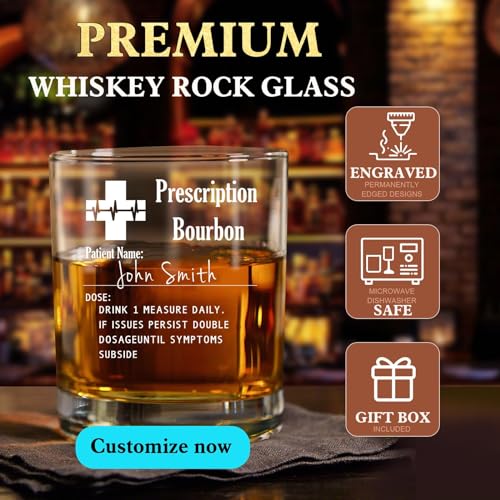 💖🤵Funny & Thoughtful Father’s Day Gift: The personalized whiskey glass of this model is inspired by prescriptions, and the funny and humorous text is a great way to make a difference. The customized name makes this gift full of deep feelings. It’s a special bond between loved ones.