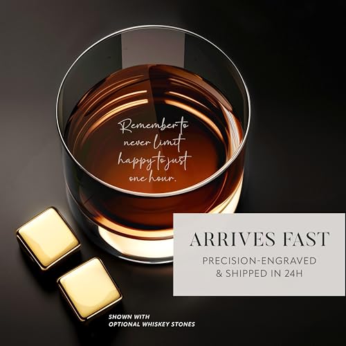 24-Hour Turnaround: Nestled in a luxurious foam-lined gift box, your engraved rocks glasses will arrive promptly, backed by over 20 years of experience and the successful delivery of over a million customized products.