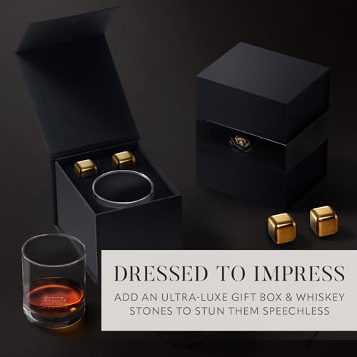 Deluxe Gift Set: This personalized whiskey glass set with box includes a custom or monogrammed whiskey glass, optional add-on of two stainless steel whiskey stones in a premium gift box; A superb choice for personalized Fathers Day gifts for grandpa, dad, papa, husband, groomsmen or any whiskey enthusiast
