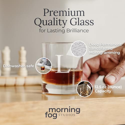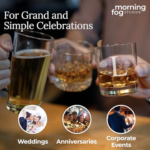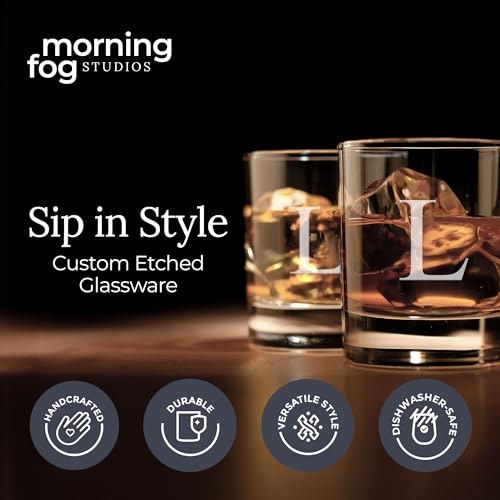 Morning Fog Studios Personalized Whiskey Glasses Set of 2, Engraved Monogram Old Fashioned Bourbon Glassware, 12.5 oz, Ideal for Men, Gifts, Birthday, Anniversary, Christmas, Groomsmen, (L)