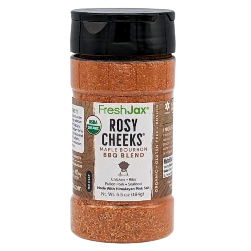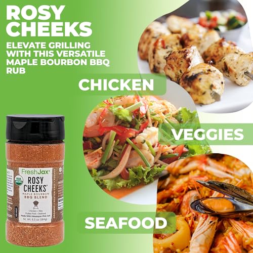 FreshJax Rosy Cheeks Organic Maple Bourbon BBQ Rub – 5.2 oz Large Bottle BBQ Seasoning for Brisket, Ribs, Pork & Chicken – Sweet & Smoky Rub for Grilling, Smoking & Barbecue Cooking